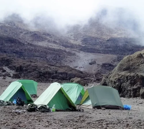 crossing the Ngare Nanyuki River to reach Miriakamba Hut (8337ft./2541m).Camp overnight.
